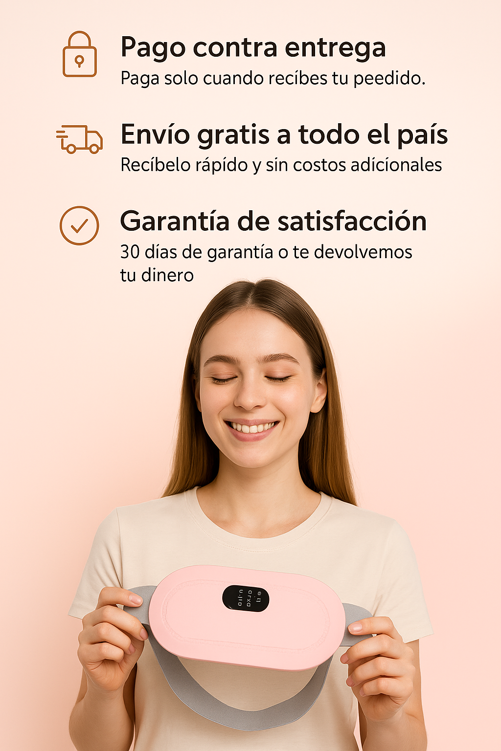 Olvídate de los cólicos con este cinturón térmico con masaje. Es moderno, cómodo y alivia el dolor en minutos gracias a su tecnología de calor y vibración. Llévalo contigo a clases, al trabajo o mientras ves tu serie favorita.